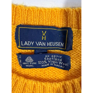 Vintage Lady Van Heusen sweater vest is a classic layering piece in a cheerful sunny yellow. Crafted from 100% Pure Virgin Shetland Wool, it offers exceptional warmth and durability that modern blends can't match.