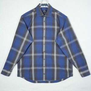 BUGATCHI UOMO Button Shirt Men's Size 2XL XXL Blue Plaid Long Sleeved Flip Cuff