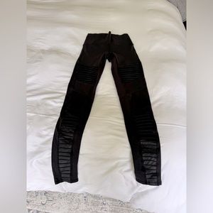 Gently-used Alo Yoga high-waist moto legging in black, women’s size small. Color is black/black glossy.