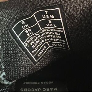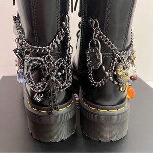 These Doc Marten Marc Jacobs vegan Jadon platform boots are black in color with attached charm accents. They are a size 8 women’s and have been previously owned. They are in good used condition with very minor signs of wear. Please review photos.