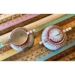 Vintage French Saxon China Gold Lace Union Made CREAMER & SUGAR BOWL.
