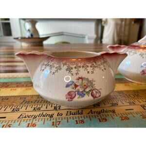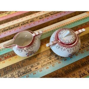 VINTAGE French Saxon China Gold Lace Floral Union Made Creamer Sugar Bowl Set