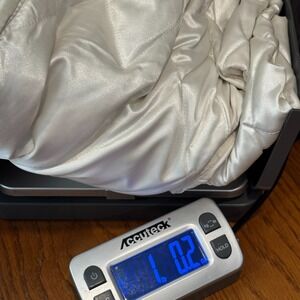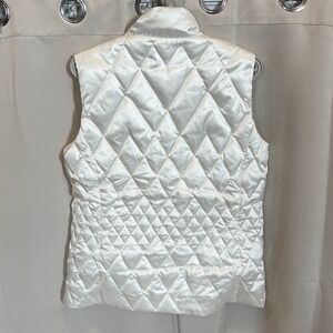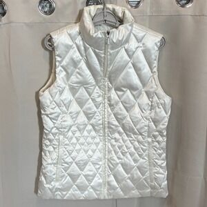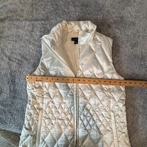 Lands End Jacket Vest Large Goose Down Quilted White Zip Satin Sleeveless 18627x