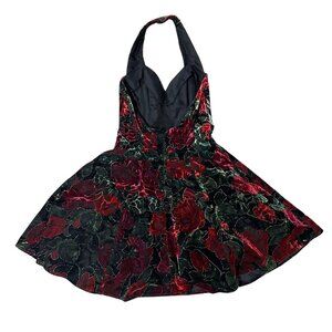 Vintage Velvet Floral Halter Dress Y2K Rampage USA Size 5 Black Red Formal Party