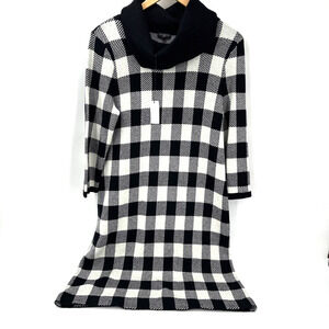 Talbots Sweater Dress Womens Petite Large Lp Turtleneck Black White Buffalo Plaid COMFY NEW $129