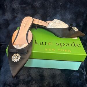 Kate Spade Darlene Satin Crystal/Bow Kitten Heel Mule Roasted Maze