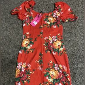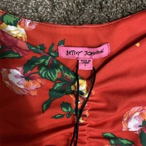 Betsey Johnson Vintage Red Floral Midi Dress NEW