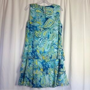 Lauren Ralph Lauren Dress Size 10 Blue Paisley Georgette Shift Ruffle Nautical