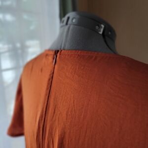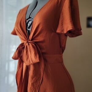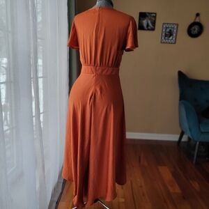 Petal & Pup Amanda Hi-Lo Tie Front Midi Dress - Rust/Terracotta Orange - US 6
