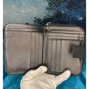 With its convenient size, you can easily slip this wallet into your pocket or purse for on-the-go use. Whether you're running errands or heading out for a night on the town, this Prada wallet will be your perfect companion.