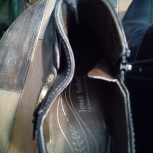 Joseph Seibel size 8.5 (39). Step out in style with these sleek black leather ankle boots. Perfect for any occasion, these boots offer both comfort and elegance. Business casual or night life. these leather boots will bring flare to the occasion.