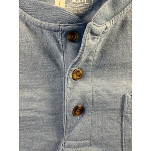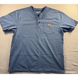 Carhartt Shirt Mens Large Blue Henley Cotton Pocket Logo Workwear Casual