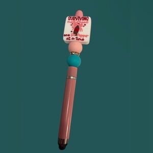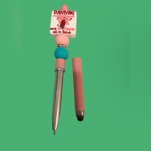 Adorable pink and turquoise keychain and stylus set. Perfect for adding a fun touch to their accessories. I can also change out beads and pen for a different color. The stylus pen shell has a regular pen under it.