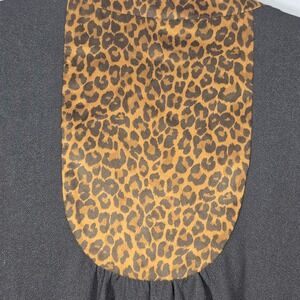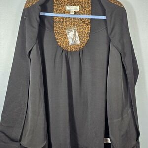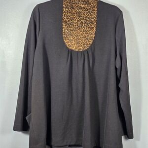 Simonton Says 1X Black Knit Jacket Leopard Trim Open Front Statement Collar
