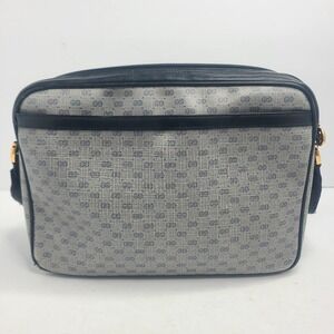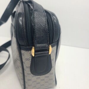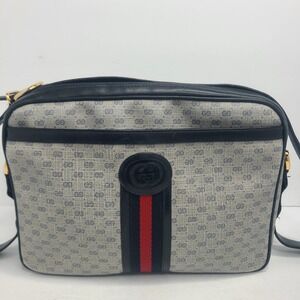 GUCCI Micro Web GG Monogram Crossbody Bag Canvas Navy Gold Vintage Italy