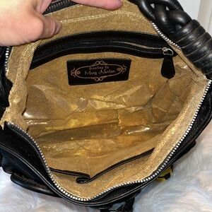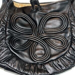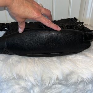 Black leather Frosting Mary Norton swirly oversized purse handbag tassels boho