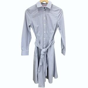 UNTUCKit Madison Striped Shirt Dress Womens Size 4 Blue White Tie Waist Classic