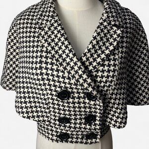 Forever 21 Houndstooth Cape Cropped Jacket with Red Lining