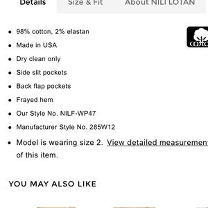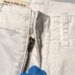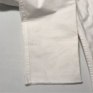 Nili Lotan Jenna Slim Pants. Colour is an eggshell white. Cotton blend fabric. Features deep pockets in front on either side with flap pockets in the back. Zip fly with hook eye fastener as well. Slim fit leg. Slightly cropped length with a raw hem. Great used condition, some stretch in crotch area as shown. Size 0.
