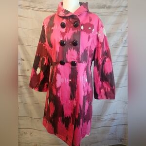 Appraisal Pink Ikat Print Double-Breasted Trench Coat – Size Approx. M