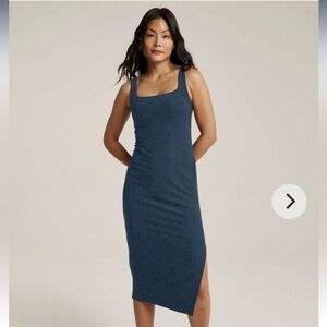 Chic sage green midi dress. Sleeveless with a flattering fit. Ideal for everyday style.