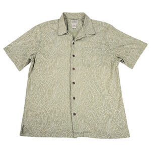 LL Bean Men MED Green Leaf Print Cotton Short Sleeve Camp Shirt Gorpcore Spring