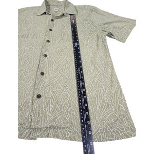 LL Bean Men MED Green Leaf Print Cotton Short Sleeve Camp Shirt Gorpcore Spring Summer Camping Beach Botanical Resort Vacation Cruise Outdoor Dadcore Normcore Office Casual Y2K 2000's Garden Party Teachercore Earthy
