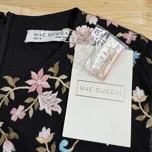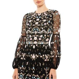 Mac Duggal NWT Floral Embellished Embroidered Gown Blouson Sleeves Size 16 Black