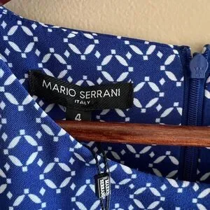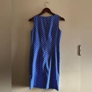 Elegant navy midi dress with a stylish pattern. Sleeveless design for versatile wear.