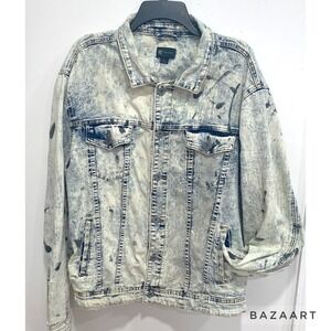 Waimea White Distressed Wash, Paint Splatter Stretch Denim Jeans Jacket Sz: L