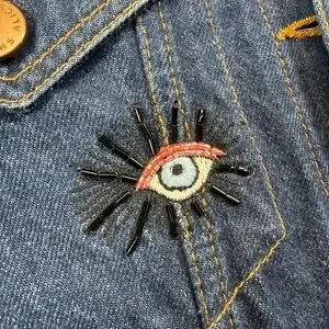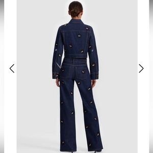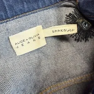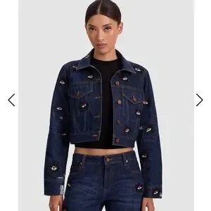 Make a statement with this stunning Alice + Olivia embellished cropped denim jacket — brand new with tags. This standout piece is scattered with sparkling, intricately beaded eye motifs that catch the light from every angle. Think classic denim… with a wink.