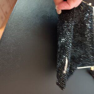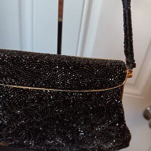This purse has a lot of sparkle. It is fabric lined with 1 small side pocket. It has lost some beads on the bottom. See photos for condition.