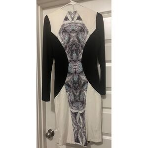 NWT Bebe Women's Small/ Color Block Bodycon Dress Crew Neck L/S Geometric Print