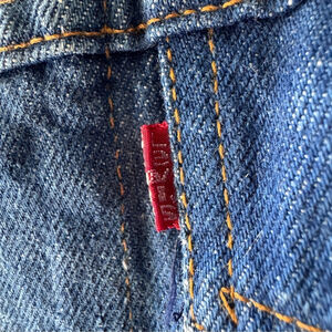 Authentic vintage Levi’s 75505-0211 denim trucker jacket from the 90s, union made in Canada from 100% cotton. This piece started as a classic Type III Levi’s jacket and was DIY customized into a sleeveless vest with raw cut armholes and a studded collar for that perfect punk biker look. Sturdy denim, classic red tab, and button front closure with chest flap pockets.
