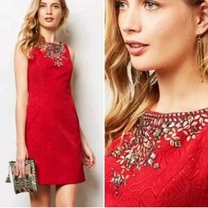 ☀️❄️Anthropologie Red Embellished Mini Dress