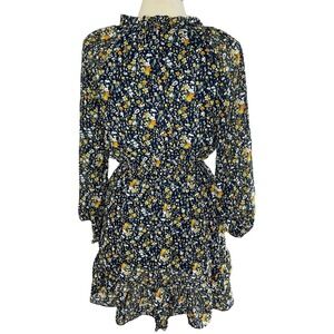 LOVE ADY Navy & Yellow Ditsy Floral Ruffled Mini Dress, Medium