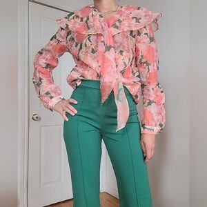 Beulah Floral Pink Blouse with Green Pants