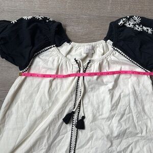 The Kimaya Mini Dress is effortless, feminine, and perfect for your everyday sustainable wardrobe. Embroidery details and tassel ties makes for a unique piece that is a perfect companion for warm weather days. Style with your favorite sandals or sneakers!