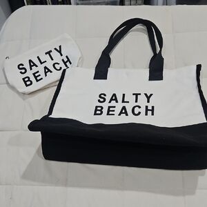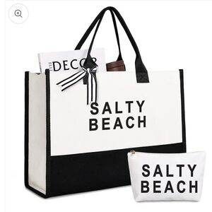 Stylish and versatile, the tote bag set is perfect for any outing. Featuring a chic black and white design, this set includes a spacious tote and a matching pouch. Ideal for beach days or casual outings.