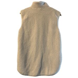 Cream colored Columbia Sherpa vest. 2 hand pockets and one chest pocket. All zippers work as they should. No holes and no stains. Women’s medium: 19.5 inches pit to pit and 26 inches shoulder to hem.