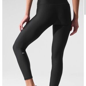 Sleek black leggings with a high-waist design. Features Alo logo.
