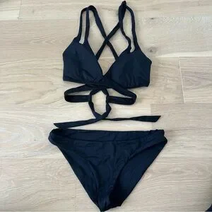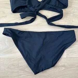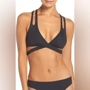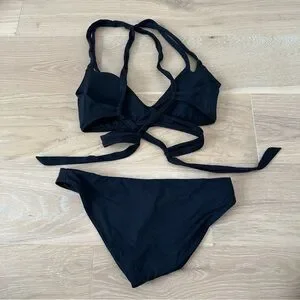 Becca Color Code Surplice Wrap bikini top and bottom black size medium D Swim