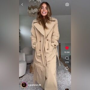Free People City Slicker Puffer Trench Coat. This outerwear piece is a blend of a classic trench style and a puffer jacket design, featured in a longline silhouette.