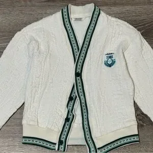 Vintage Varsity Tennis Cable Knit Toddler Cardigan button sweater