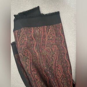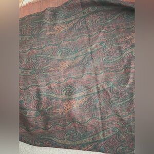 Beautiful, very large shawl/stole/scarf with paisley print and fringe edges. Gorgeous colors!