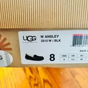 UGG Women’s Black Suede Loafers with Cream Lining. Size 8