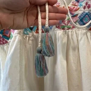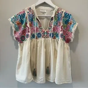 THML Embroidered Cotton Blouse Top Short Sleeve Casual Boho Resortwear Small
