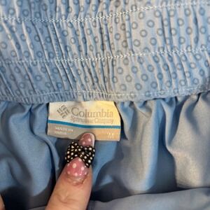 Keywords: Columbia skort, athletic skirt, tennis skirt, golf skort, running shorts, activewear, geometric pattern, outdoor apparel, performance wear, athletic shorts, sporty, workout clothes, casual shorts, athleisure