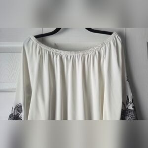 White House Black Market Off-Shoulder Top With Floral Embroidered Sleeves Size M