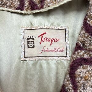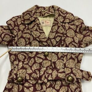 80s Vintage boucle wine beige belted womens winter coat Size 4